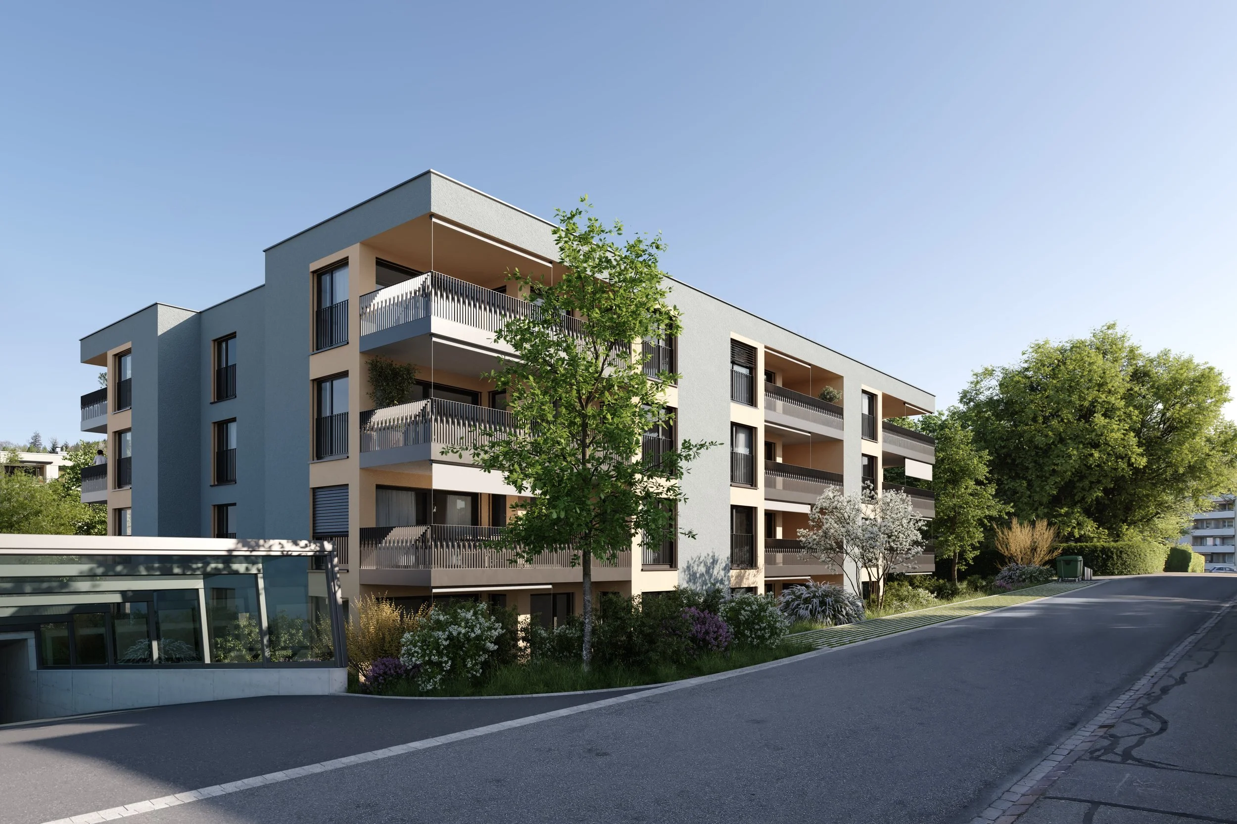 Die Überbauung mit 49 Wohnungen überzeugt durch moderne Architektur, gehobenem Ausbaustandard sowie ansprechenden Grundrissen.