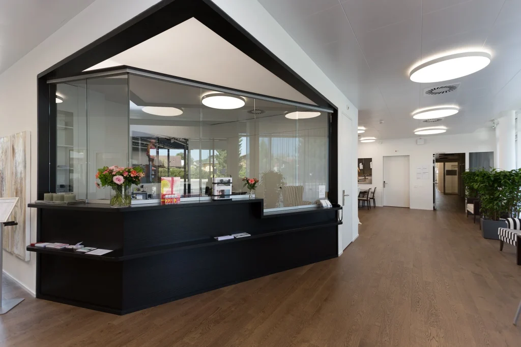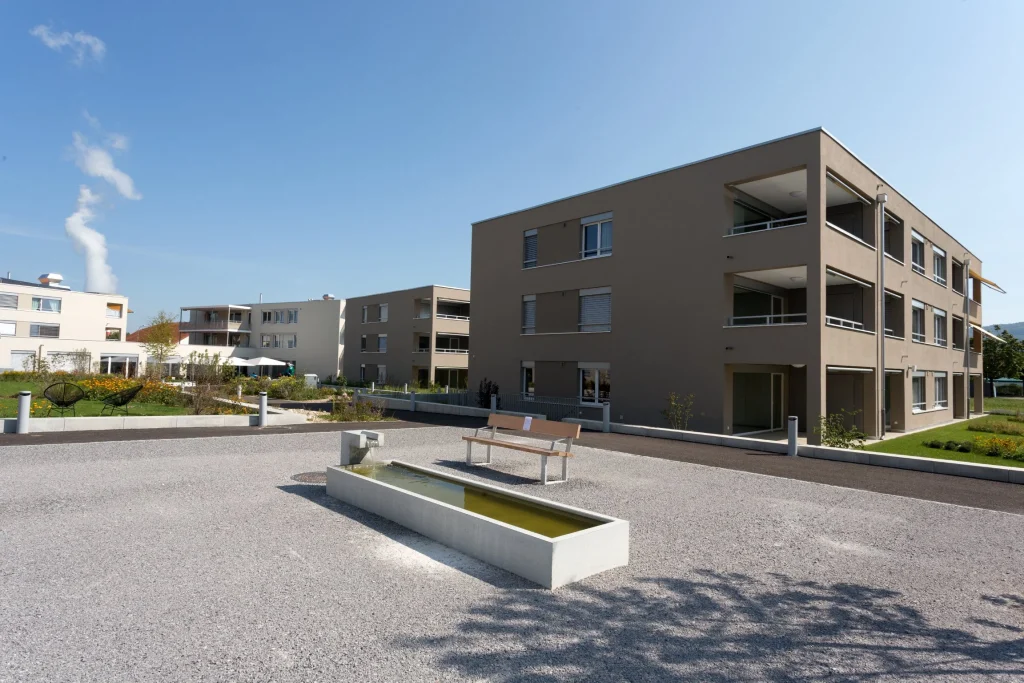 Das moderne Seniorenzentrum Oase in Obergösgen liegt zentral, unweit von Einkaufsmöglichkeiten und öffentlichen Verkehrsmitteln, und bietet moderne 1½- und 3½-Zimmer-Wohnungen, Pflegestudios und eine integrierte Pflegeabteilung sowie eine gemeinsame Infrastruktur für gesellige Treffen und verschiedenste Aktivitäten.